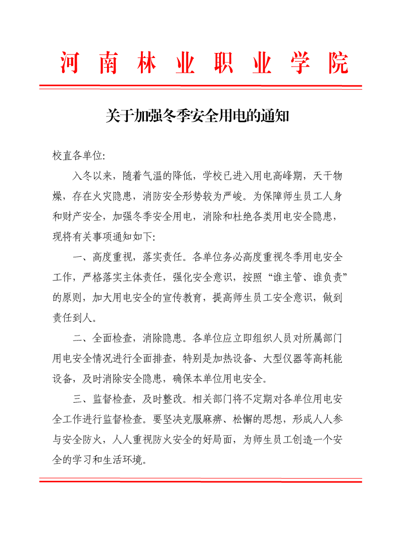关于加强冬季安全用电的通知