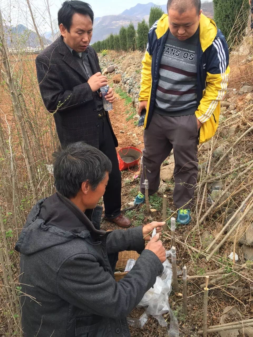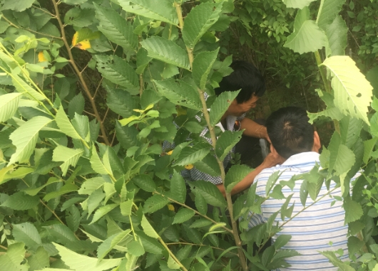 2016年7月28日学院科研与项目规划处处长姚方带领任淑辉副教授、陈莉等老师赴栾川秋扒,观察榆树嫁接苗生长情况。