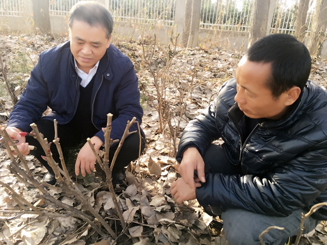 2016年11月30日下午,全省林业科技创新大会结束后,宋宏伟院长从鄢陵赶回洛阳途中,应洛阳东花园油用牡丹园园主的邀请,到实地为花农手把手示范、传授油用牡丹冬季修剪,使花农掌握关键技术,深受园主和花农欢迎。