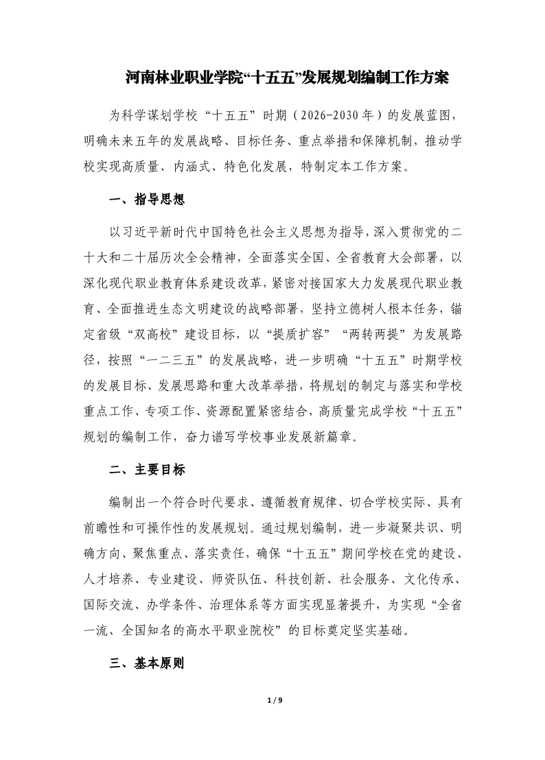 河南林业职业学院“十五五”发展规划编制工作方案