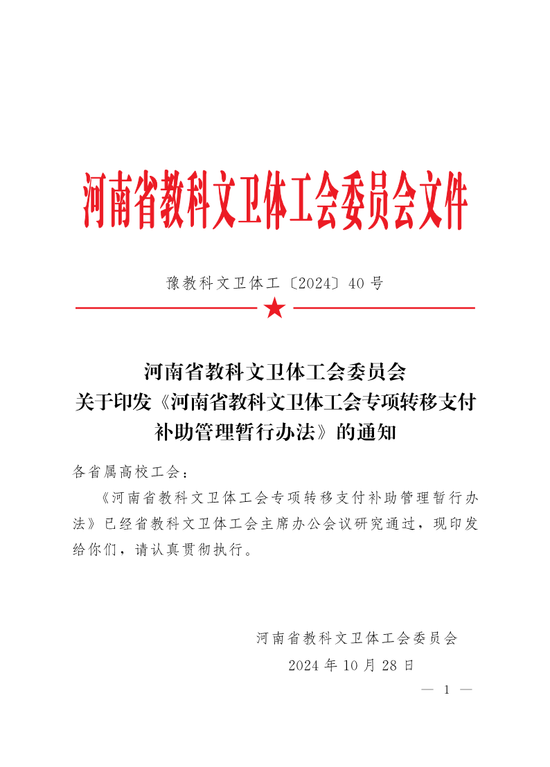 河南省教科文卫体工会专项转移支付补助管理暂行办法