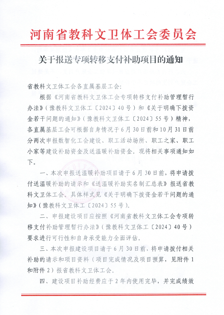 关于报送专项转移支付补助项目的通知(1)