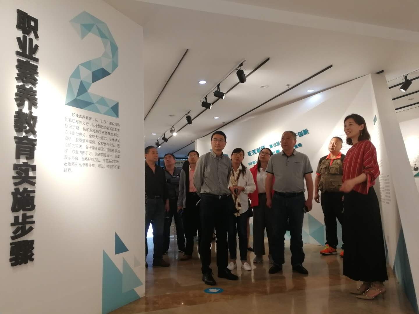 路买林一行和杭州职业技术学院楼晓春副校长及人文社科部负责人及相关专家教授进行了座谈,双方围绕课程思政及基础课教学等内容进行了深入地交流和探讨,随后,参观了浙乡非遗馆和学生素养展示中心,并现场观摩了相关课程教学。