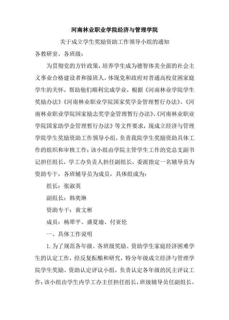 河南林业职业学院经济与管理学院关于成立学生工作资助领导小组的通知