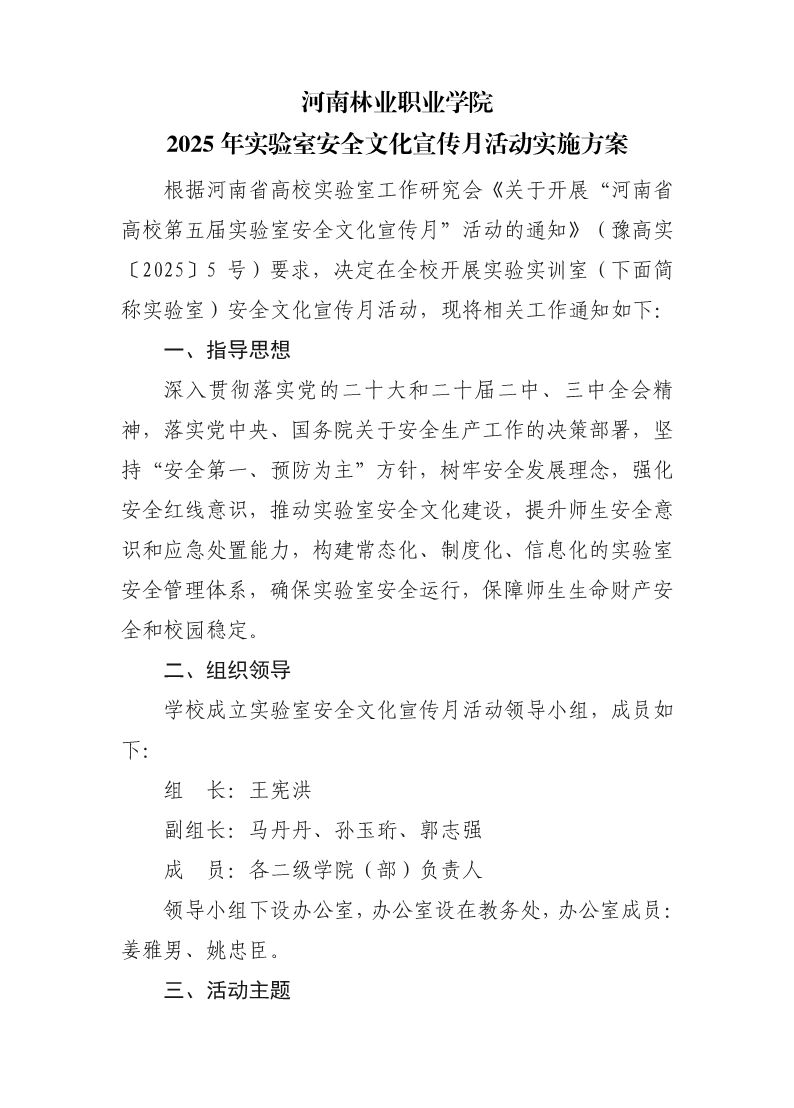 河南林业职业学院 2025年实验室安全文化宣传月活动实施方案