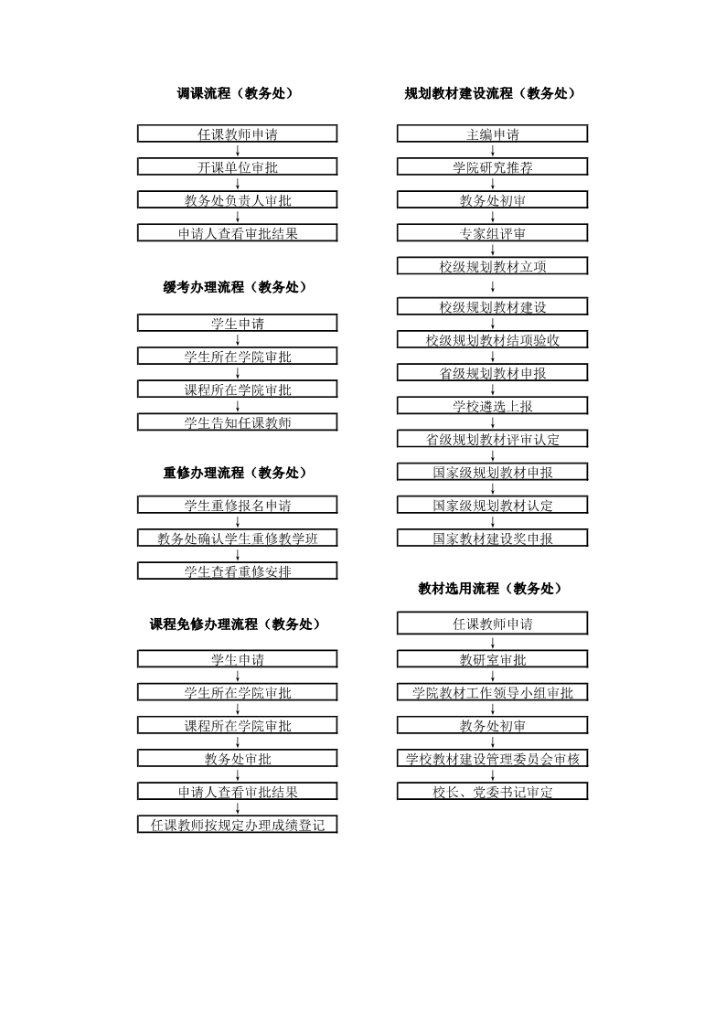教学各项业务办理流程图