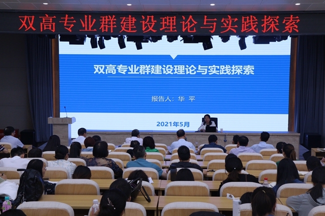 5月27日下午,我院邀请郑州铁路职业技术学院华平教授作“双高专业群建设理论与实践探索”讲座。讲座在会议中心举行,学院工会主席周书清、副院长刘宗利、路买林、刘耀玺、纪委书记陈风顺出席活动,各系主任、副主任、教研室主任、专业负责人、园林系、生态系、经贸系全体教师参加活动。教务处处长行红明主持讲座。