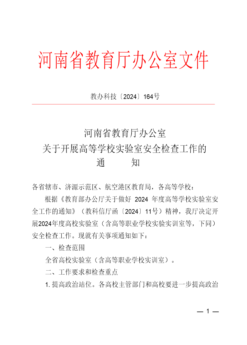 关于开展高等学校实验室安全检查工作的通知