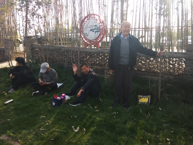 走出魏坡村,在村庄的西北面,是以“魏紫”牡丹为主题修建的名贵牡丹园。园内牡丹花团锦簇,路边树披新绿,地上芳草如茵,到处涌动着浓浓的春意。老同志们行走期间,已然是满面春光、流连忘返。