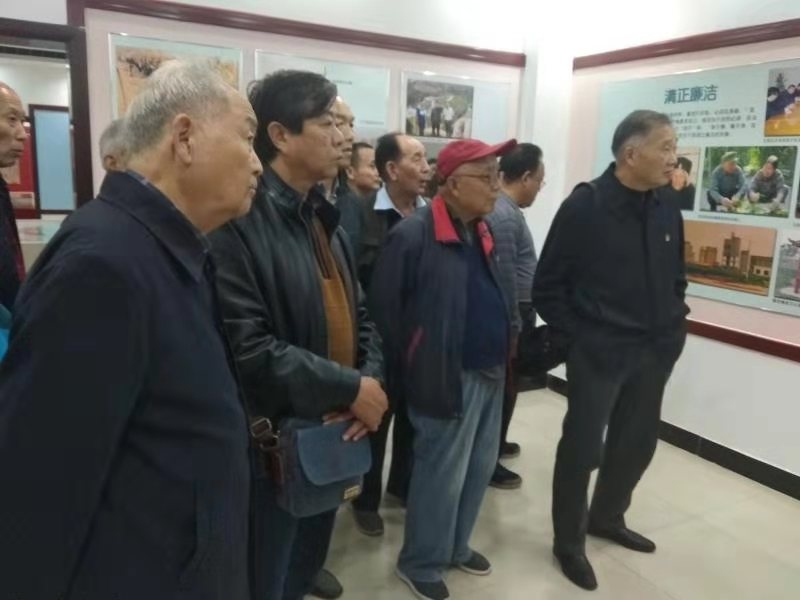 在讲解员小冯的带领下,老党员们通过实物、图片和讲解,重温了吴金印书记扎根基层的50年奋斗历程。吴金印书记1968年参加工作,面对家乡贫穷落后的面貌,他下定决心,一定要带领群众摘掉这贫穷落后的帽子。在吴金印同志工作后的40多年里,他多次放弃组织上调他到上级机关工作的机会,深深扎根基层,与群众同甘共苦,全心全意为群众干实事谋发展。在担任狮豹头乡党委书记期间,他带领群众筑坝造田、下河造田、上山挖地、修建水池,让秃山岭披上绿装,荒山沟长满庄稼,改变了狮豹乡贫穷落后面貌。在他担任唐庄镇党委书记期间,他科学规划,因地施策,大力推进唐庄镇现代化工业和特色农业发展,2018年,唐庄镇的工农业产值达到93亿元,是全国闻名的亿元村镇。群众们都幸福了,而他自己却清贫如故。作为一名党的基层干部,他几十年如一日,在平凡的岗位上苦干实干的精神,赢得了群众的爱戴和拥护,被群众喻为“太行公仆”。吴金印同志以自己的实际行动诠释了一个共产党员的初心和使命。