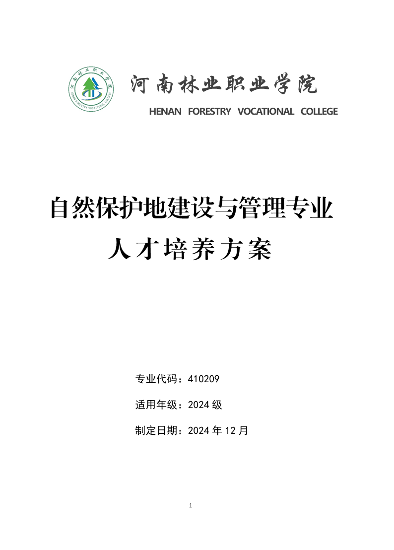 2024级自然保护地建设与管理专业人才培养方案
