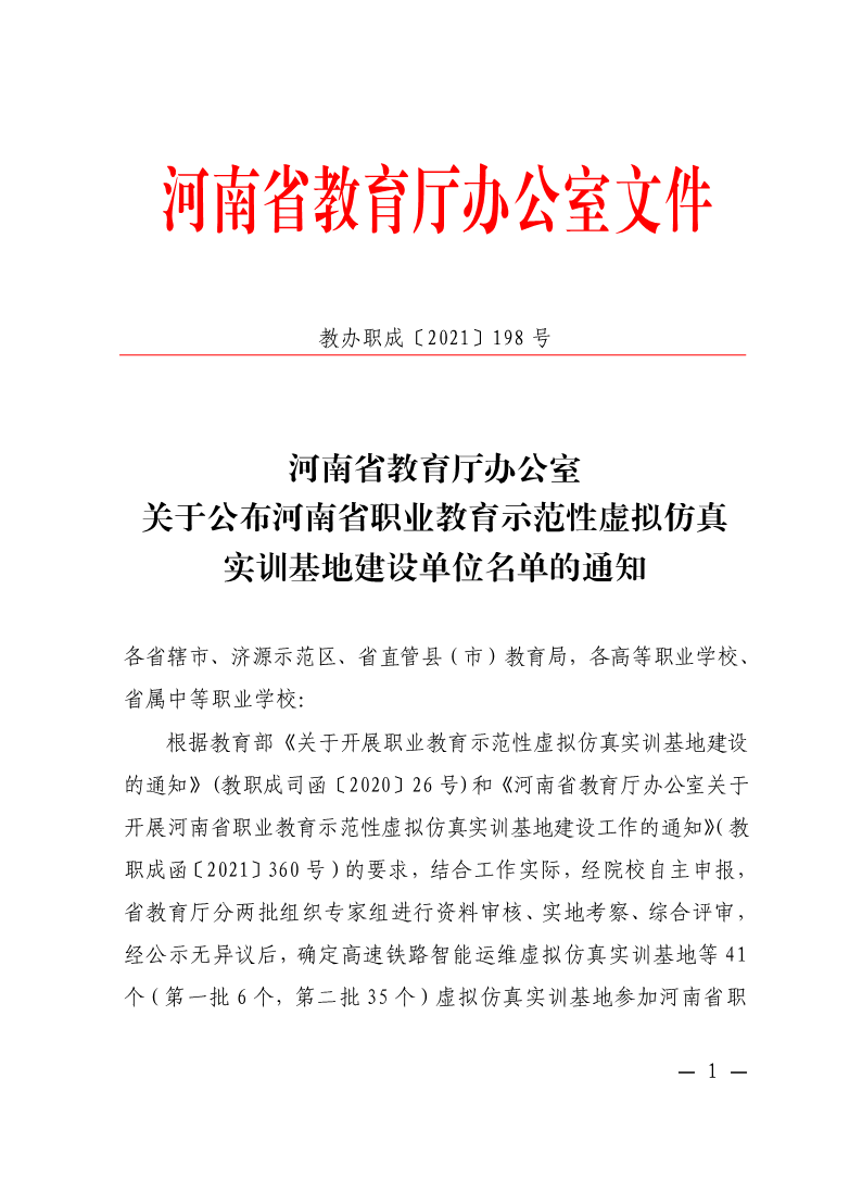 我院入选河南省职业教育示范性虚拟仿真实训基地建设工作基地名单