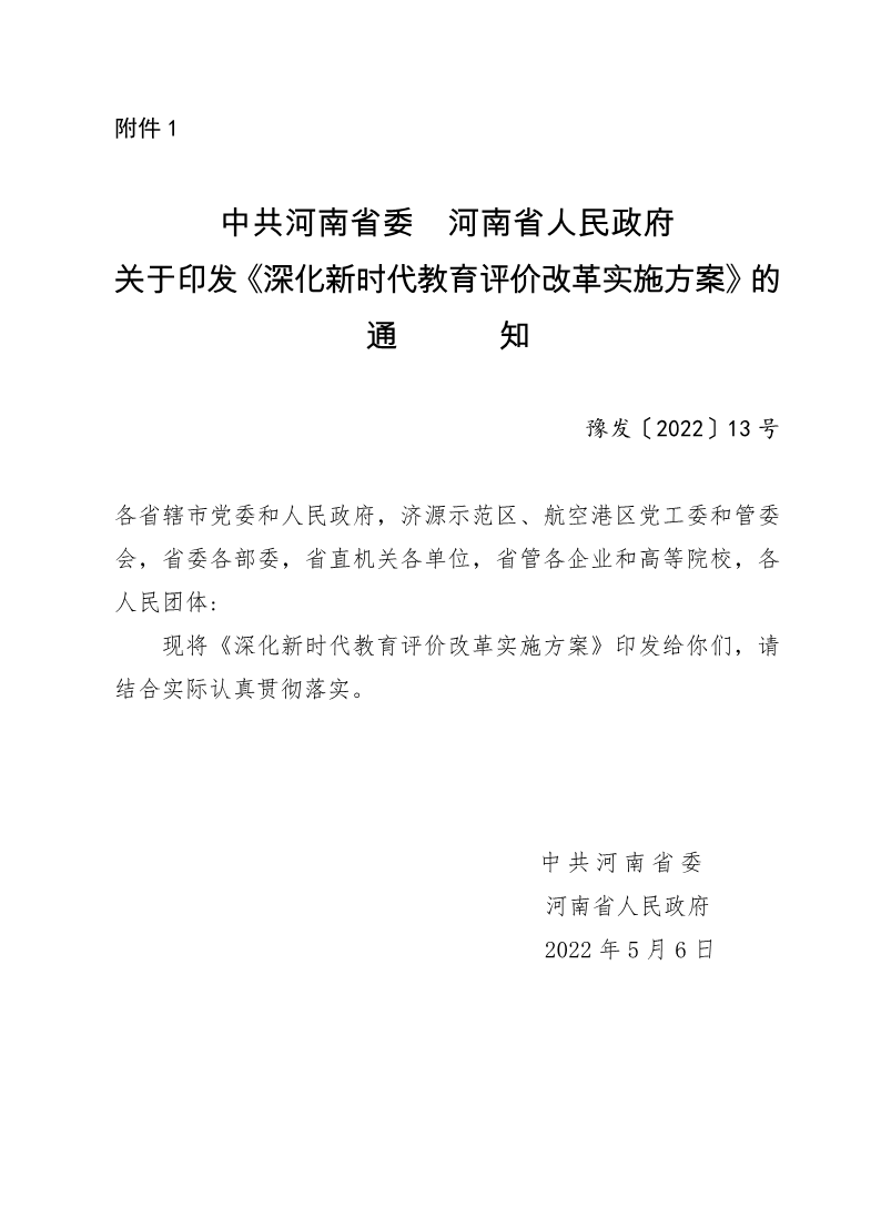 中共河南省委河南省人民政府关于印发《深化新时代教育评价改革实施方案》的通知 作者:发展规划办公室 来源:河南省教育厅 发布时间:2024-09-04 浏览次数: 次 【字体:小 大】 分享到: 【打印正文】