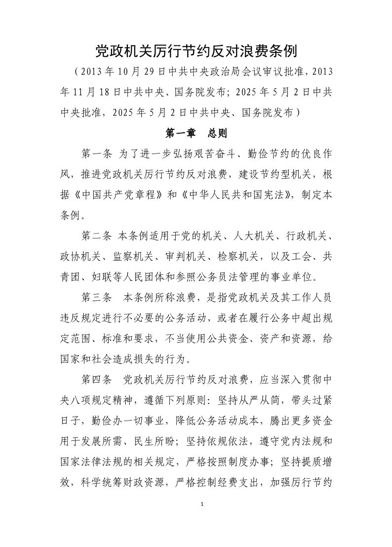 党政机关厉行节约反对浪费条例