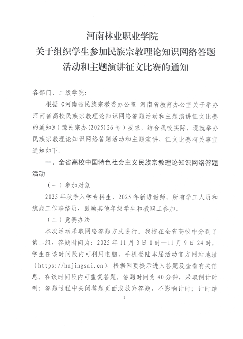 关于举办民族宗教理论知识网络答题活动和主题演讲征文比赛的通知
