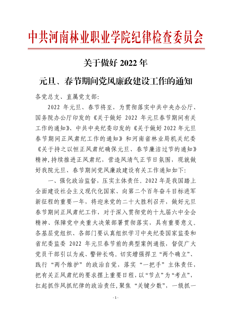 关于做好2022年元旦、春节期间党风廉政建设工作的通知